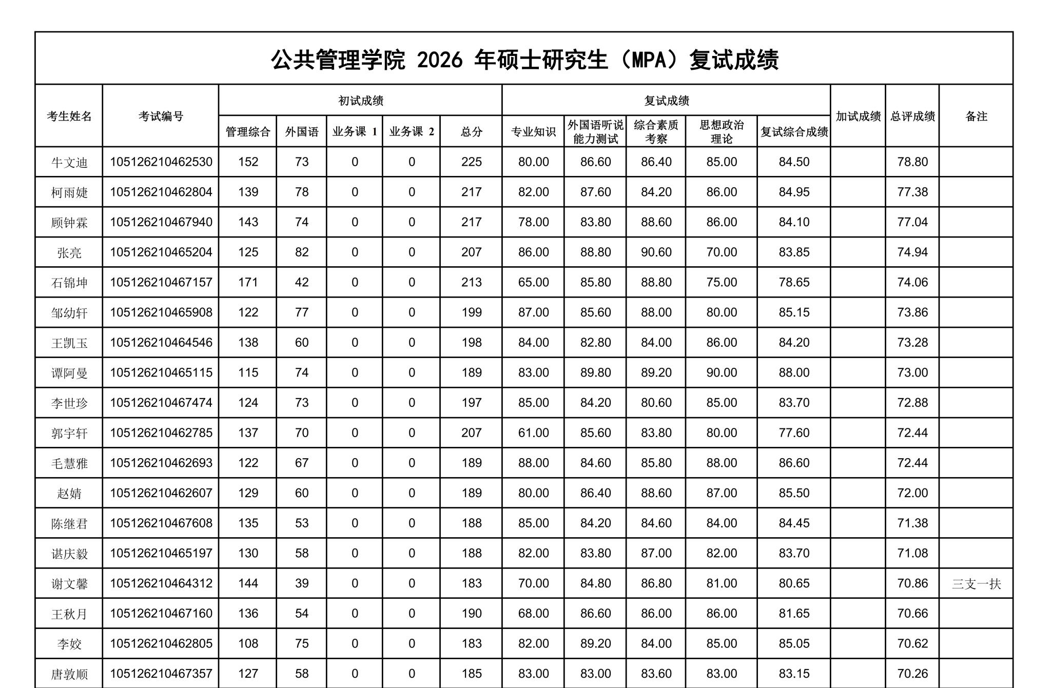 CROWN官网2026年硕士研究生(MPA)复试成绩公示