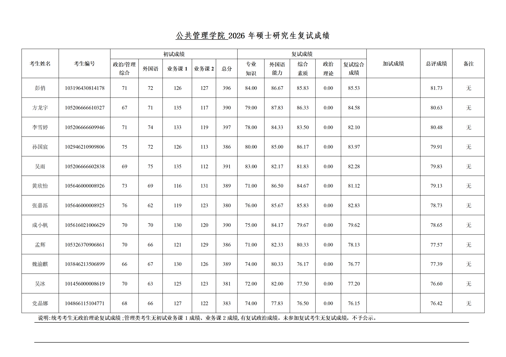 CROWN官网2026年公共管理学学硕(1204)调剂复试成绩公示